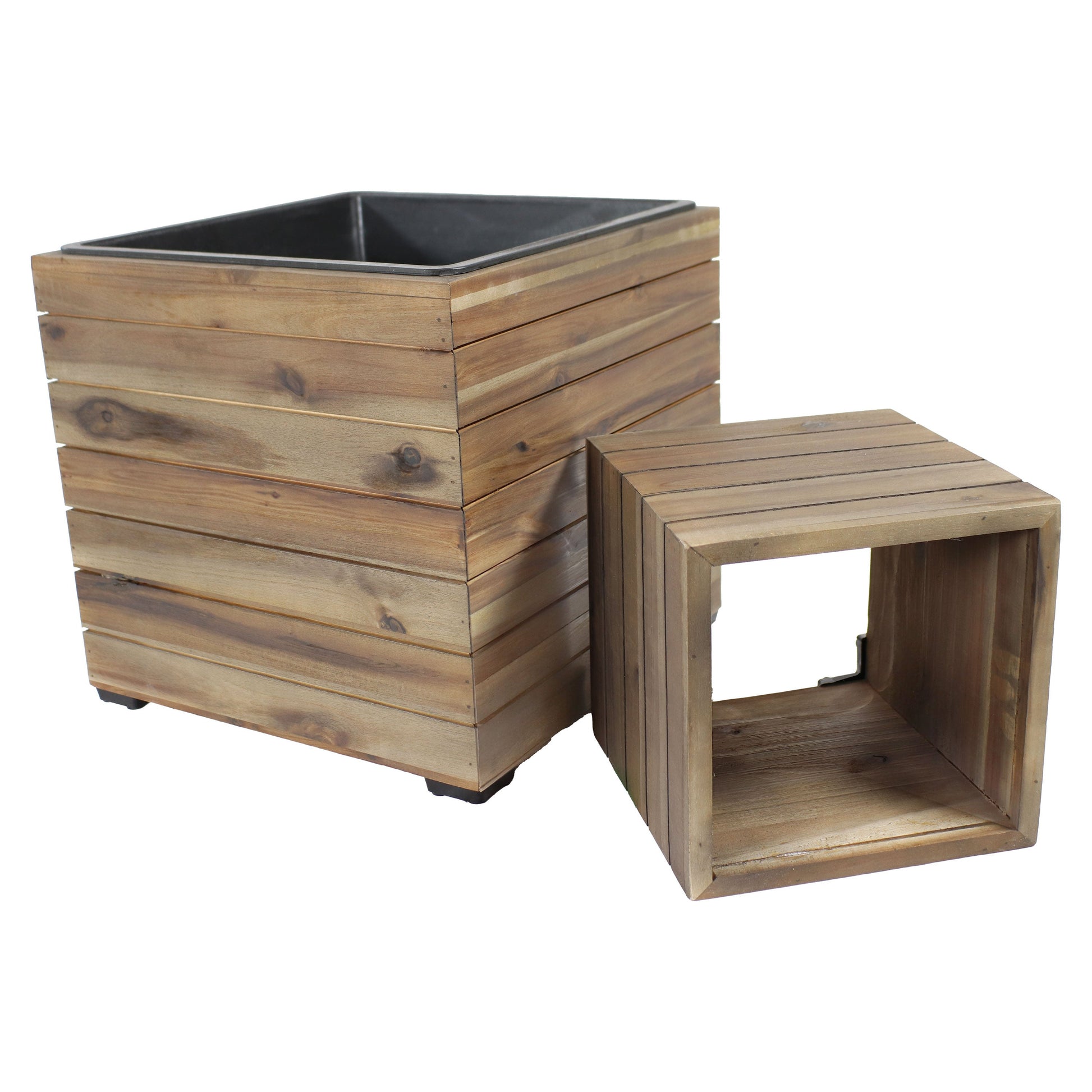 2-Piece Wooden Planter Boxes with Plastic Liners