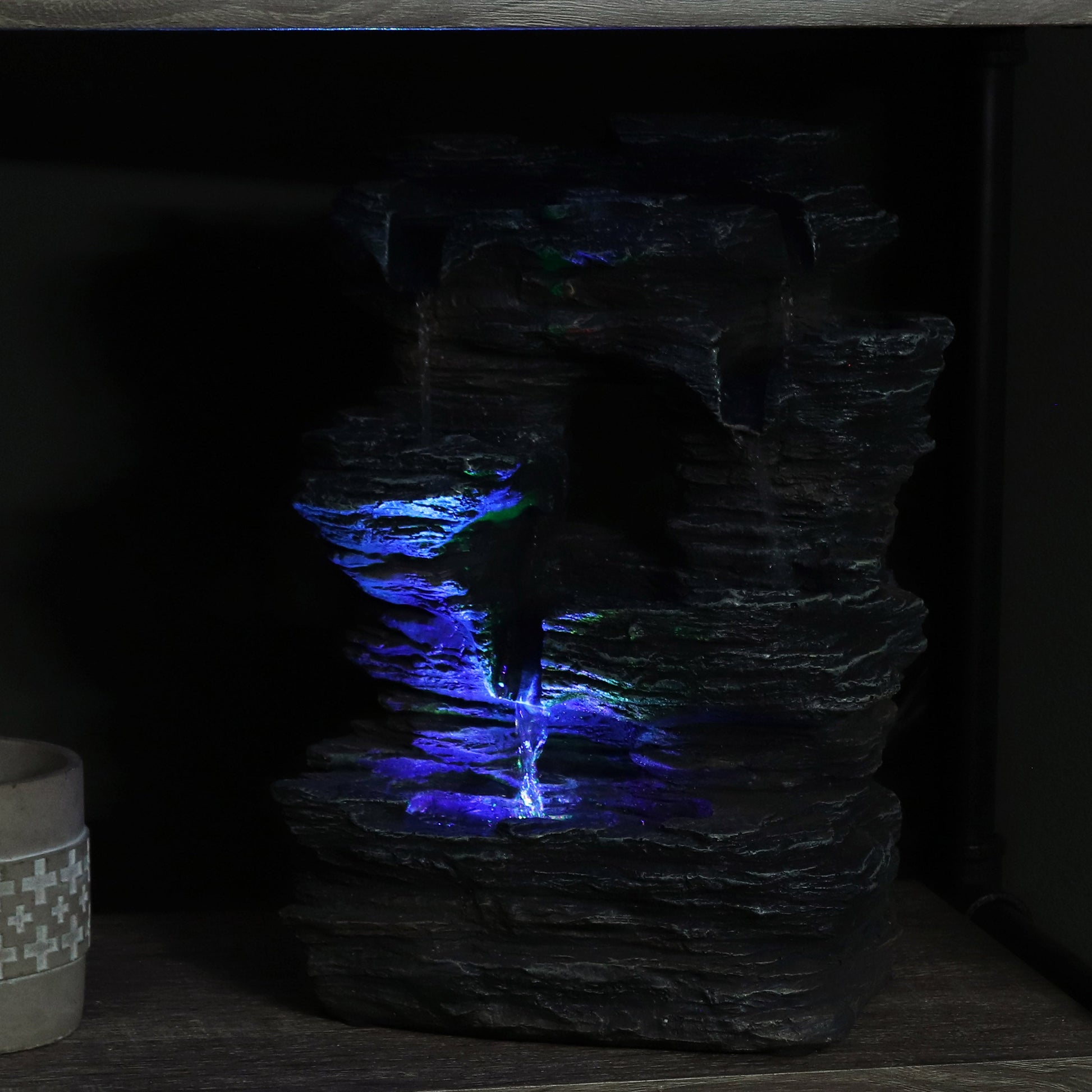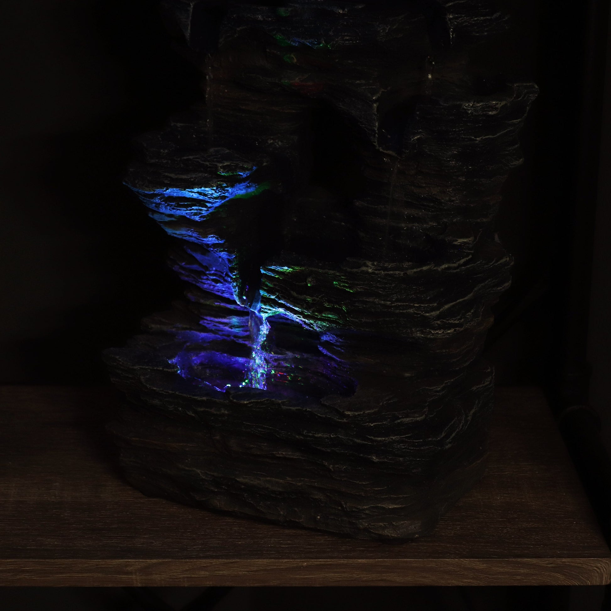 Experience instant relaxation after a stressful day with this Five Stream Rock Cavern Indoor Tabletop Water Fountain with Multi-Colored LED Lights. This indoor waterfall fountain is designed to resemble natural stacked stones that are commonly found on mountain trails. The calm rushing sounds of the waterfall will instantly relax you in your home or office space. Also, setup is easy and this indoor waterfall fountain plugs into any standard electrical outlet.